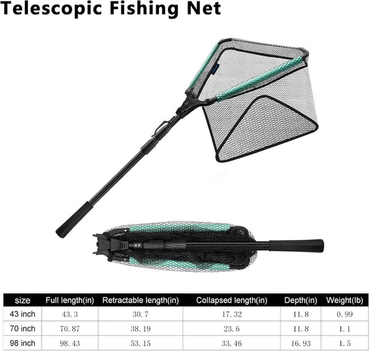 Floating Fishing Net, Telescoping Pole Handle Foldable Fish Landing Net with Rubber Coated Mesh Fly Fishing Net for Easy Fish Catch and Release Freshwater and Saltwater Men Women Kids